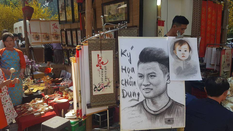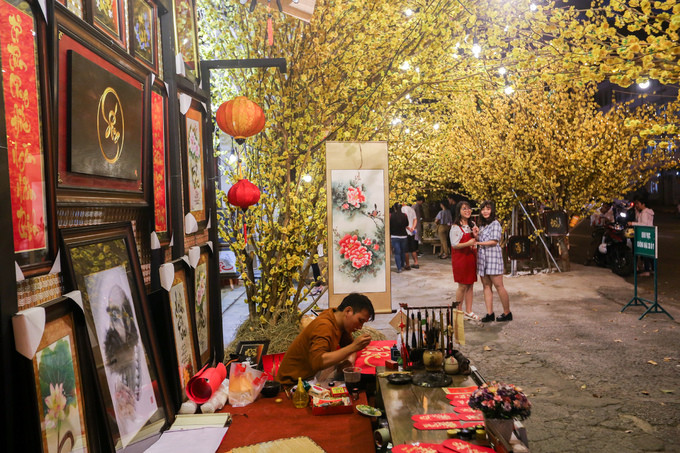 Ngoài đường hoa Nguyễn Huệ, thì phố Ông Đồ (Nhà văn hóa Thanh Niên, Q.1) chính là địa điểm teen Sài Thành ùn ùn kéo tới check-in mỗi dịp Tết đến. Có vô vàn những tiểu cảnh mang đậm hơi thở của “Tết quê” mà bạn không nên bỏ lỡ: đàn heo (đất) nằm ngủ ngon lành trên những đụn rơm, ông đồ cho chữ, quán quê với bộ bàn ghế gỗ từ thời ông bà mình, khu bán đồ chơi gỗ từ xa xưa, góc ký hoạ chân dung,…