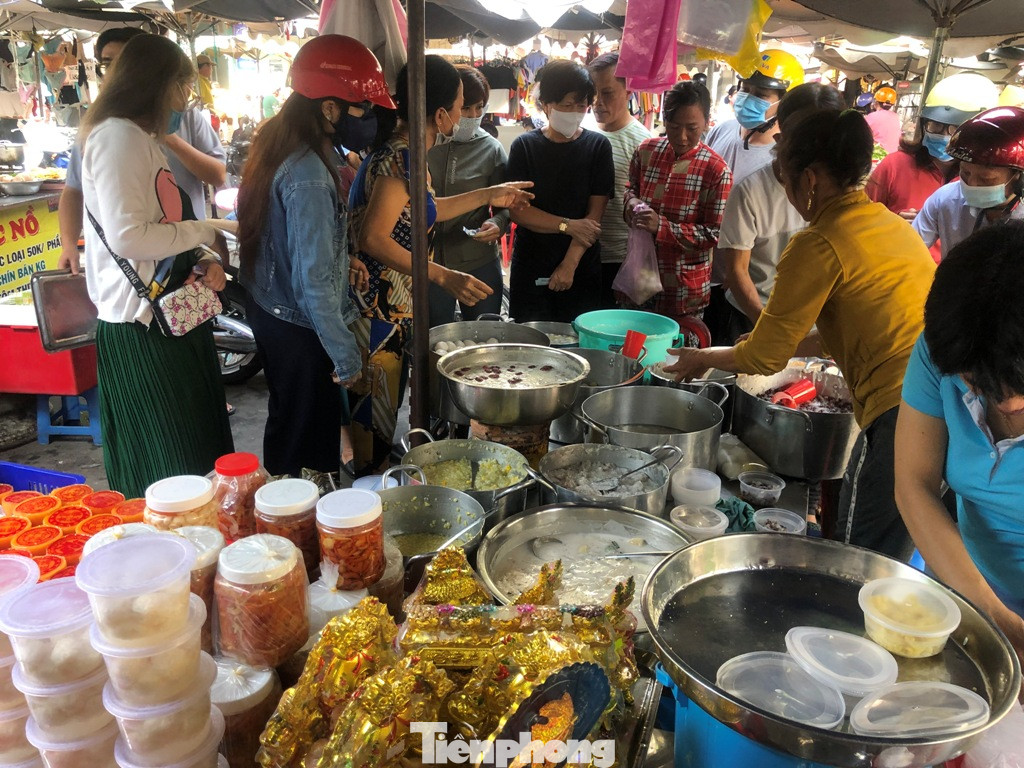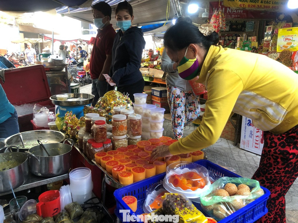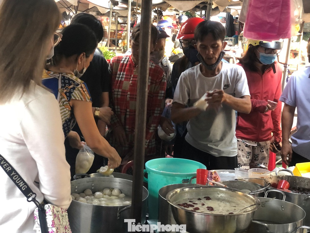 Một quầy hàng chè nổi tiếng ở chợ Hòa Bình (Q.5) luôn thu hút đông khách chờ mua. Quầy hàng có 5-6 người bán nhưng vẫn không kịp phục vụ khách.