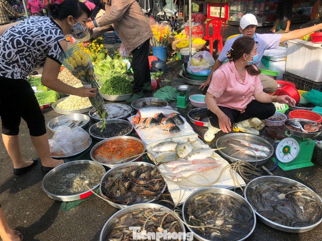 Các tiểu thương cho biết, nhìn quanh chỉ thấy người bán chứ không mấy ai mua. "COVID-19 dữ quá, không mấy ai muốn đến chợ mua sắm. Nếu ngày hôm nay không bán được hàng thì mình ôm lỗ" - chị Hương (tiểu thương kinh doanh thủy hải sản) nói.