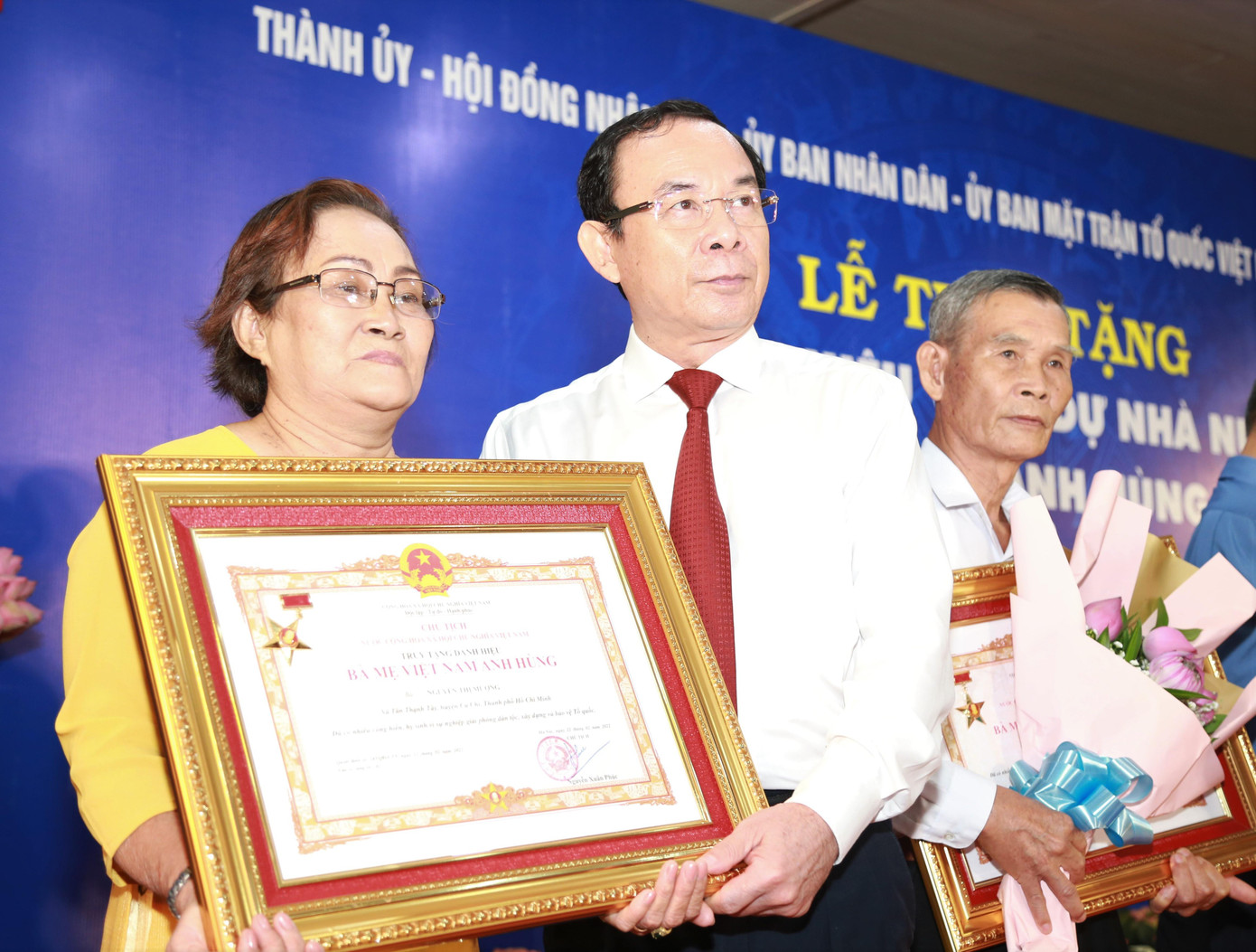 Bí thư Thành ủy TPHCM cho biết, thời quan qua, cùng với chính sách chăm lo cho thương binh, bệnh binh, gia đình liệt sĩ, người có công với cách mạng, thành phố đã nỗ lực cao nhất để bảo đảm chế độ chính sách và tham gia phụng dưỡng các Mẹ VNAH. “Các ngành, các cấp, các cơ quan đoàn thể và nhân dân các địa phương ở những nơi có gia đình các Mẹ VNAH sinh sống hãy quan tâm nhiều hơn nữa, thể hiện bằng tấm lòng kính trọng yêu thương, chăm sóc sức khỏe và điều kiện sống của các mẹ và gia đình bằng tình cảm chân thành và lòng biết ơn sâu sắc để các mẹ có điều kiện sống khỏe hơn, sống vui hơn, bình an trên quê hương đất nước mà một phần xương thịt của mình đã ngã xuống”, ông Nguyễn Văn Nên bày tỏ.
