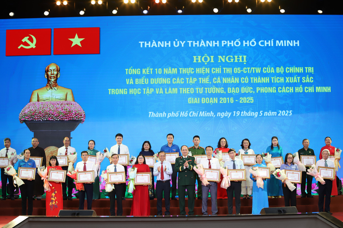 Tại hội nghị, Ban Thường vụ Thành ủy TPHCM đã biểu dương và trao Bằng khen của Chủ tịch UBND TPHCM cho 341 điển hình (146 tập thể, 195 cá nhân) trong học tập và làm theo tư tưởng, đạo đức, phong cách Hồ Chí Minh.