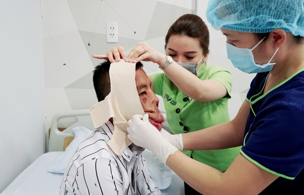 Ngày 16/8, TS.BS Nguyễn Phan Tú Dung, Giám đốc Bệnh viện (BV) thẩm mỹ JW Hàn Quốc – Trưởng kíp mổ cho biết, BV vừa tiến hành ca phẫu thuật kéo dài hơn 10 tiếng đồng hồ để phẫu thuật cho gương mặt chảy xệ của bệnh nhân Lê Văn Mến.