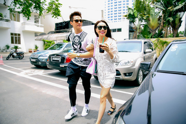 Trưa 2/6, Trà Ngọc Hằng vui vẻ khoác tay người mẫu Minh Anh đến Đài truyền hình Việt Nam để ghi hình cho chương trình 'Bữa trưa vui vẻ'. Anh còn tận tình đưa đón người đẹp bằng xế hộp tiền tỷ của mình.