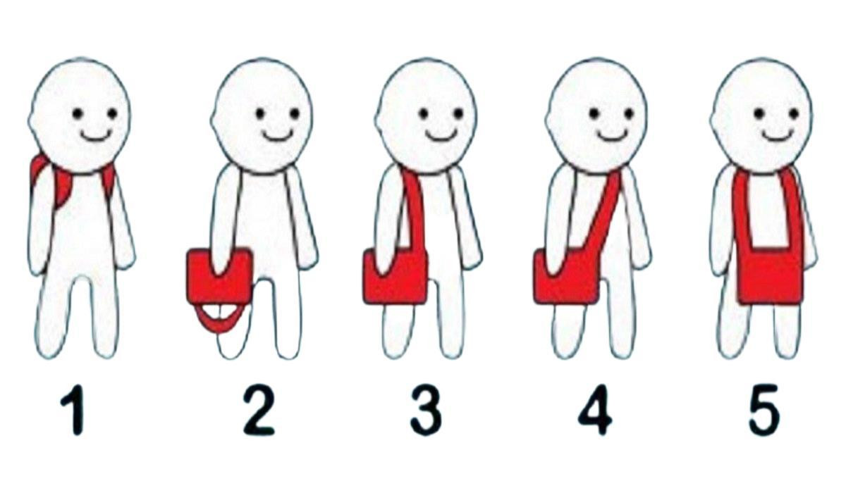 Bạn hay đeo túi giống hình nào trong số những hình dưới đây; tất nhiên bạn có thể đeo túi theo nhiều kiểu khác nhau, nhưng hãy chọn cách mà bạn hay đeo nhất hoặc thích đeo nhất: