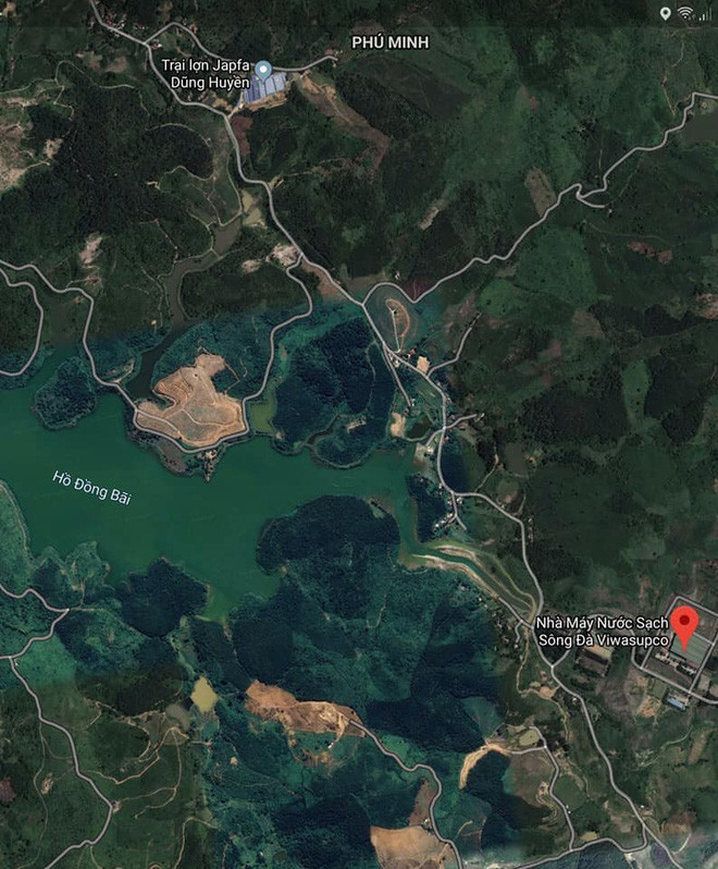 Theo bản đồ vệ tinh từ Google maps cho thấy, trang trại lợn này nằm trên triền núi cao, gần khu vực hồ Đồng Bài - nơi cung cấp nguồn nước chính cho nhà máy nước sạch sông Đà (Công ty cổ phần đầu tư nước sạch sông Đà - Viwasupco).