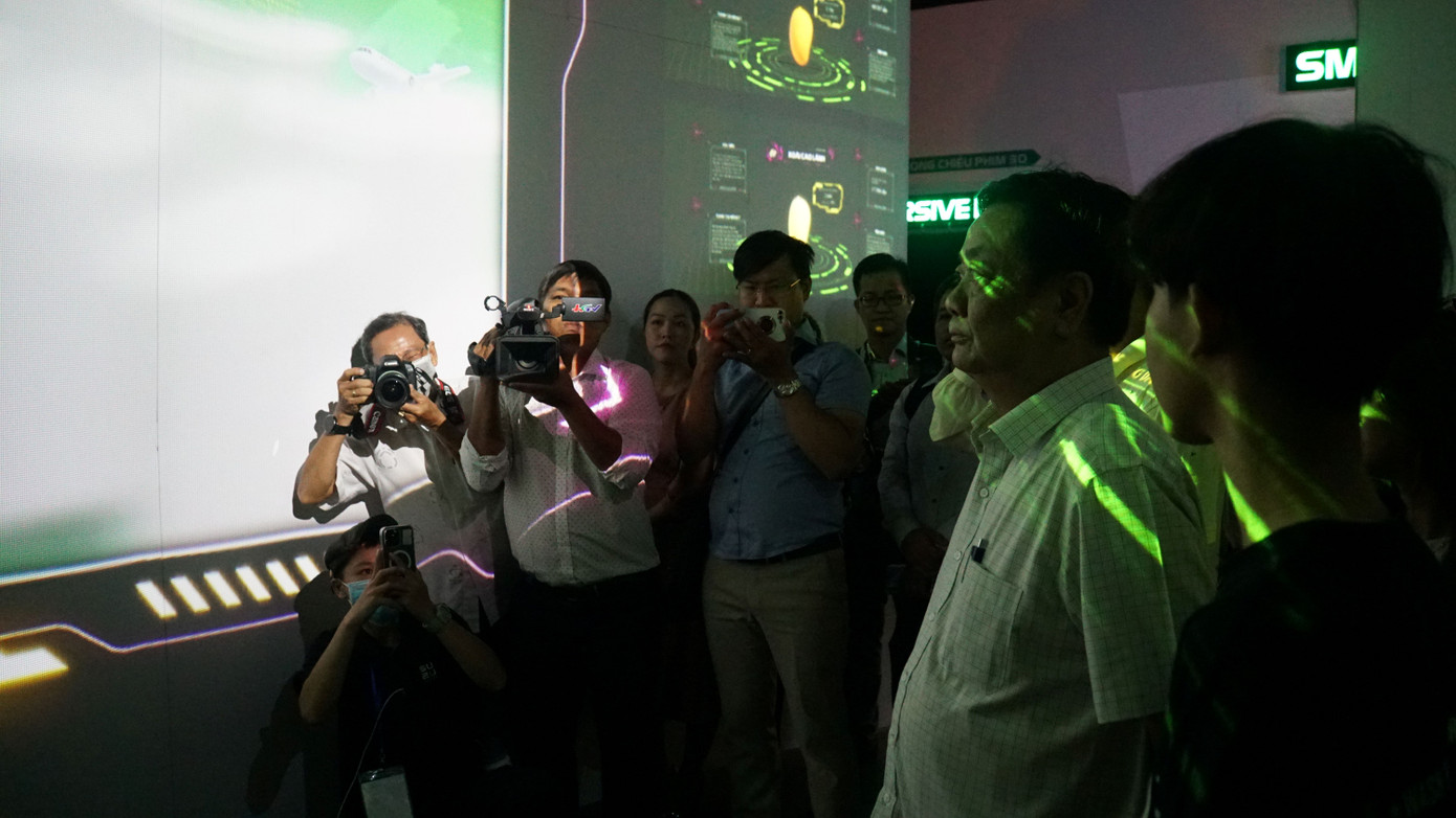 | Không gian sẽ mang đến cho du khách nhiều trải nghiệm thú vị từ việc sử dụng các công nghệ hologram, mapping và AR thực tế ảo. Du khách trải nghiệm trong không gian thực tế ảo là tường Panorama với 2 tường tương tác cong và 1 bàn điều khiển. Ảnh: An Bình |