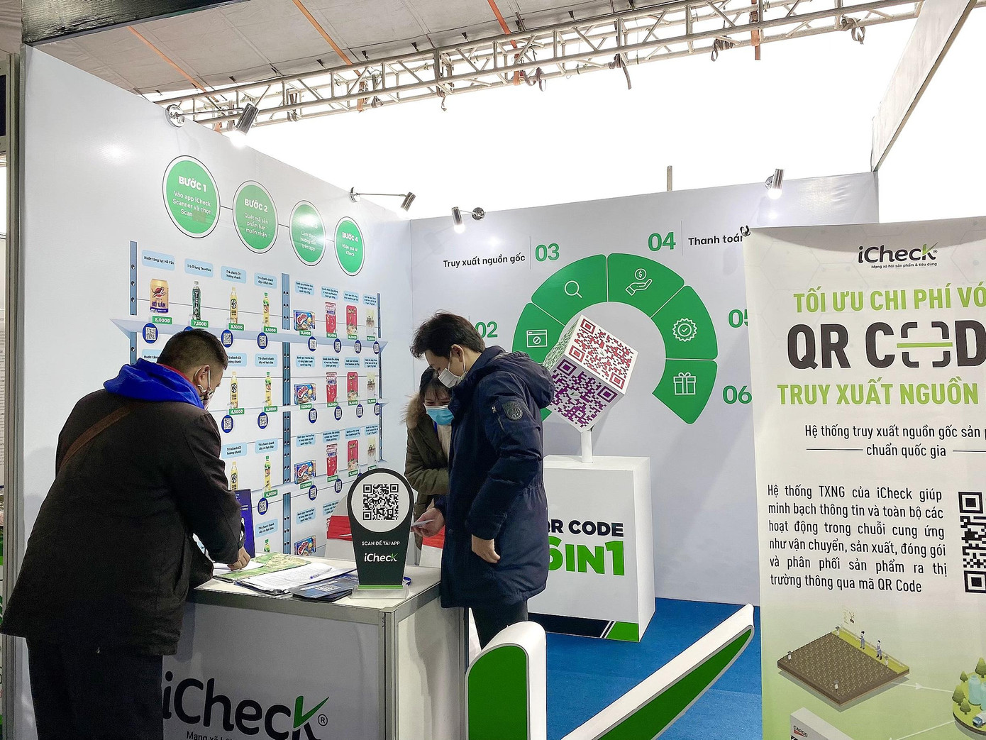 Là đơn vị tiên phong trong lĩnh vực cung cấp các giải pháp chuyển đổi số, Công ty Cổ phần iCheck đã giới thiệu gian hàng ảo Scan & Buy tại triển lãm Đổi mới sáng tạo 2021 diễn ra trong hai ngày 9 và 10/01/2021. Gian hàng mô phỏng hàng hoá bằng hình ảnh (mỗi sản phẩm được gắn một mã QR) tương tự các quầy hàng thực tế trong siêu thị. Khách tham quan gian hàng chỉ cần quét các mã QR đó và thực hiện các thao tác nhập thông tin giao hàng đơn giản trên điện thoại để mua hàng ngay lập tức.