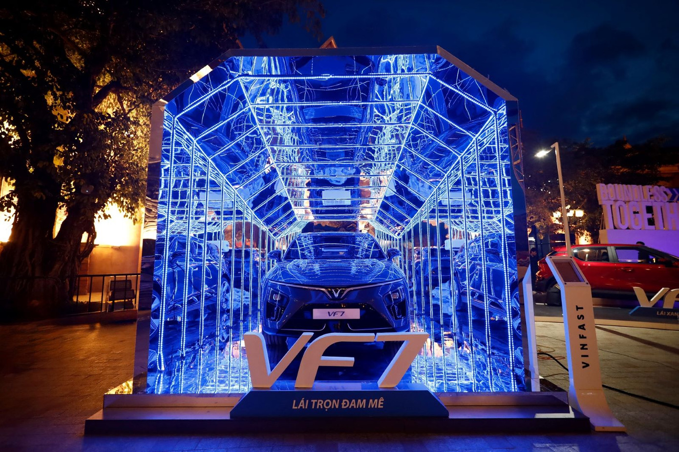 “Spot light” của khu vực trưng bày là VF 7, được thiết kế như một đường hầm ánh sáng “vô cực” với công nghệ ánh sáng hiện đại, dải đèn chuyển màu theo chủ đề của lễ hội âm nhạc kết hợp cùng gương chiếu 360o. VinFast VF 7 nhận “mưa lời khen” về thiết kế và những công nghệ an toàn và hỗ trợ lái, hứa hẹn trở thành lựa chọn hàng đầu phân khúc khi bán ra thị trường.