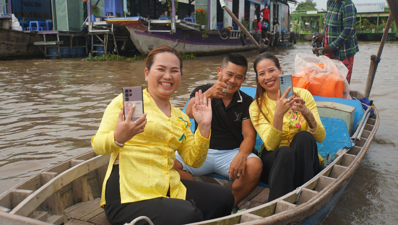 | Du khách trải nghiệm sông nước tại chợ nổi Cái Răng. - Ảnh: Hòa Hội |