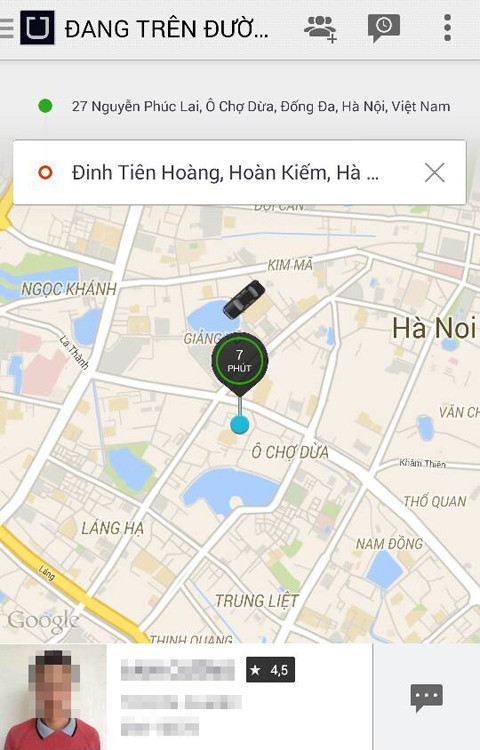 Không lâu như tôi tưởng, chỉ khoảng 5 phút sau khi gửi yêu cầu, một tài xế Taxi Uber đã trực tiếp gọi điện để xác nhận lại địa điểm đón, lúc này trên màn hình điện thoại của tôi cũng hiện rõ luôn tên tài xế kèm theo hình ảnh chân dung, nhãn hiệu xe và biển số xe để dễ dàng nhận diện.