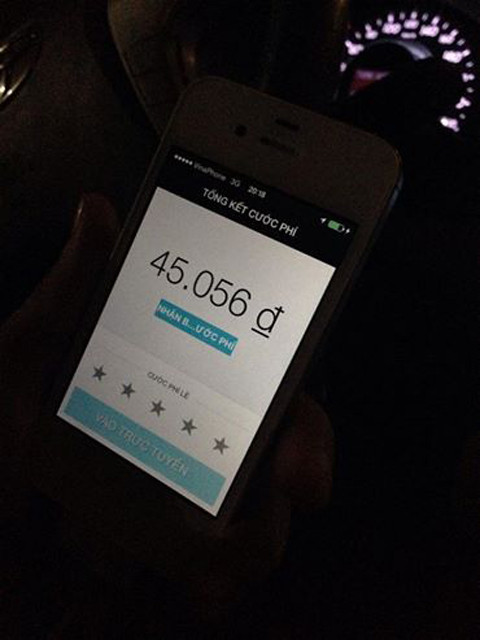 Sau khi kết thúc chặng hành trình, đến được đường Đinh Tiên Hoàng, tài xế C. ấn kết thúc trên chiếc điện thoại gắn trên xe, trên màn hình điện thoại của tôi cũng ngay lập tức hiện lên số tiền cần phải thanh toán. Số tiền mà tôi phải trả cho quãng đường vừa đi chỉ nhỉnh hơn 45.000 đồng một chút. So với mức giá di chuyển thông thường trên các hãng Taxi hiện tại đã rẻ hơn rất nhiều, thậm chí là chỉ ngang như đi xe ôm.