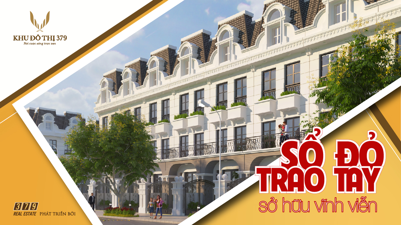 Được hình thành trên diện tích đất nền với pháp lý rõ ràng, người mua sẽ ngay lập tức nhận được sổ đỏ liền tay sau khi bàn giao dự án. Chủ đầu tư cam kết tất cả các sản phẩm tại dự án KĐT 379 Vũ Công đều có quyền sở hữu vĩnh viễn, các cư dân tương lai sẽ không chỉ nhận được một nơi an cư lâu dài, một nơi nghỉ dưỡng tuyệt vời kề sông, một tài sản sinh lời bền vững mà còn là tài sản riêng dành cho thế hệ sau.