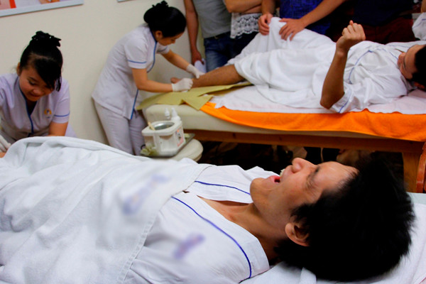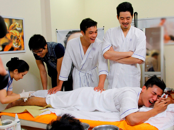 Lần đầu phải tẩy lông, hầu hết các chàng trai đều tỏ ra khá đau đớn là la hét om xòm. Thậm chí họ còn nắm tay nhau để cùng vượt qua nỗi đau 'kinh hoàng' này.