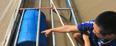 Anh chàng Đỗ Văn Thư, người Phúc Thành, làm thuê cho anh Lâm mấy năm nay, ngày đêm ăn ngủ ở bè cá. Nhắc chuyện cá khổng lồ, Thư khẳng định là chuyện thật. Thư chưa được tận mắt con cá khổng lồ đó, nhưng anh chàng này cũng khẳng định, nó phải nặng cả tạ, to như cái thùng phi.