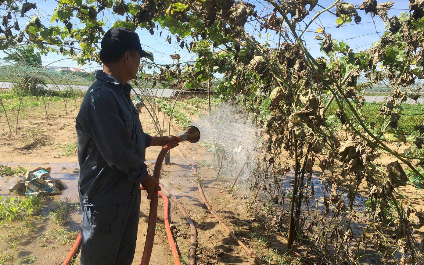 Mấy ngày qua, Đà Nẵng có mưa nên việc tưới cây được cứu rỗi đôi chút, tuy nhiên các giếng khoan vẫn mặn. Bà con lo ngại nếu những ngày tới không có mưa, vườn rau khó sống nổi.