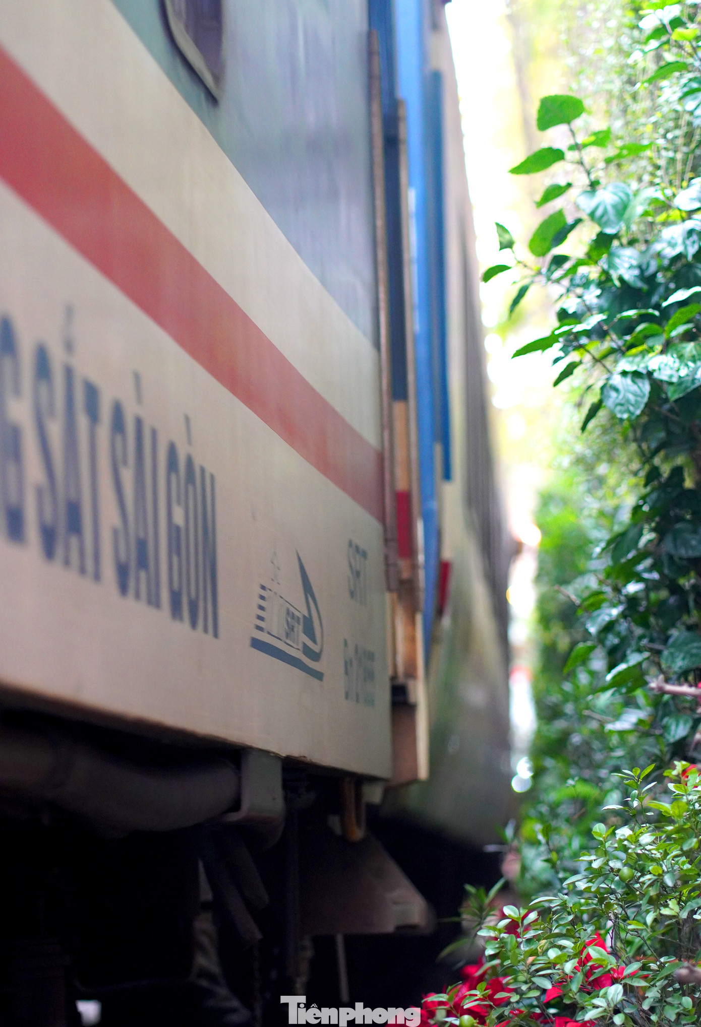 | Quan sát, căn khoảng 5 - 10 phút trước khi tàu tới người dân và du khách ở đây mới "dọn đường" cho tàu chạy qua. |