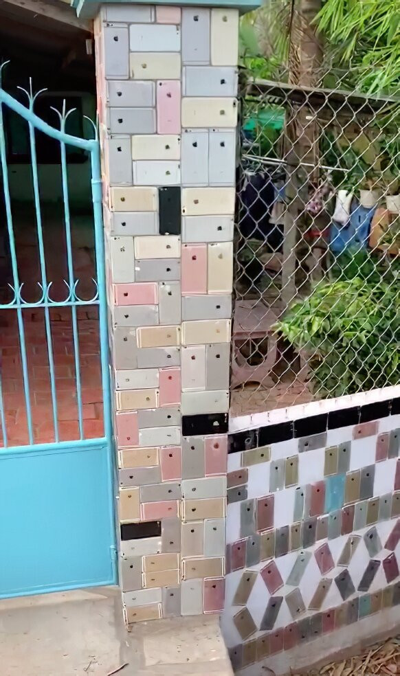 Tường rào ngôi nhà cũng được gia chủ “chơi lớn” ốp bằng iPhone. (Ảnh chụp màn hình)