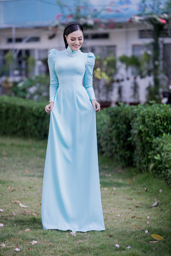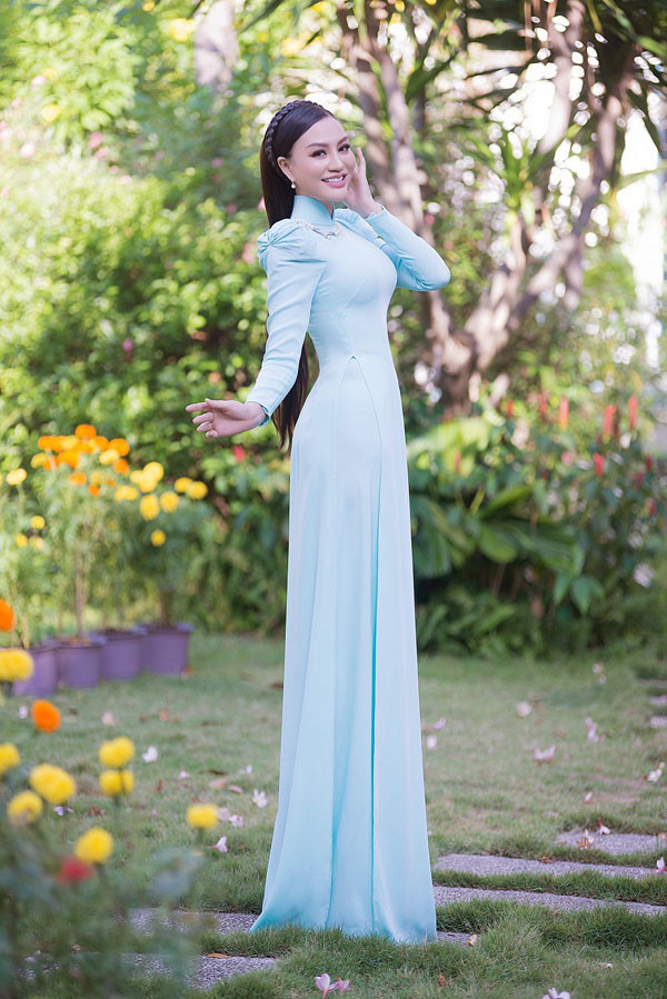 Diện áo dài truyền thống cổ điển tay phồng, Trần Huyền Nhung giản dị nhưng sang trọng, vô cùng duyên dáng. “Nữ hoàng áo dài” mang nét đẹp từ xa xưa của người phụ nữ truyền thống Việt Nam. Gương mặt phúc hậu, nụ cười thân thiện, người đẹp càng ghi điểm trong lòng công chúng!