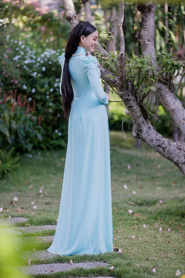 Nữ hoàng Trần Huyền Nhung dịu dàng với áo dài truyền thống của NTK Tuấn Hải