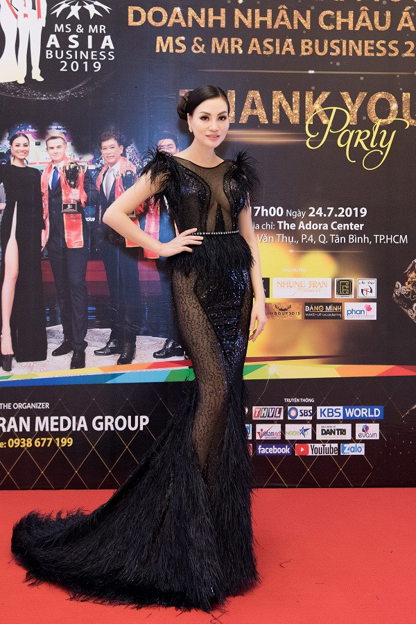 Tại Event Thank you party Ms & Mr Asia Business 2019 tổ chức thành công vang dội ở Hàn Quốc, bà chủ của tập đoàn truyền thông Nhung Tran Media thần thái rạng ngời với đầm đen sexy của nhà thiết kế Tuấn Hải.
