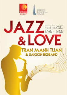 TPO - Trần Mạnh Tuấn - nghệ sĩ Jazz hàng đầu Việt Nam sẽ cùng ban nhạc Saigon Big Band của anh hội ngộ khán giả trong đêm nhạc với chủ đề tình yêu tại tòa tháp Bitexco Financial Tower cao nhất TPHCM vào lúc 17 giờ 30 ngày 13/2.
