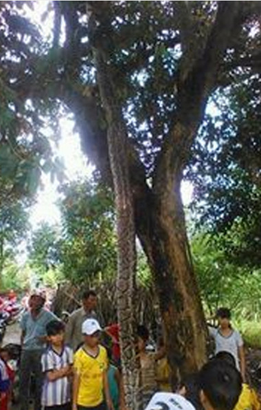 Đêm khuya cùng ngày, anh Trường cùng hai người khác leo lên khu rừng rậm ở độ cao hàng chục mét phát hiện con trăn lớn đang ngậm con dê. Ba người đàn ông dùng gậy tấn công tới tấp cho tới lúc trăn bị thương và nhả con dê.