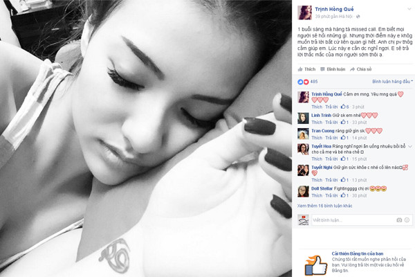 Mới đây, chân dài 9x đã chính thức lên tiếng: "Một buổi sáng mà hàng tá missed call (cuộc gọi nhỡ). Em biết mọi người sẽ hỏi những gì. Nhưng thời điểm này em không muốn trả lời bất cứ liên quan gì hết. Anh chị phóng viên thông cảm giúp em. Lúc này em cần được nghỉ ngơi. Em sẽ trả lời thắc mắc của mọi người sớm thôi ạ".