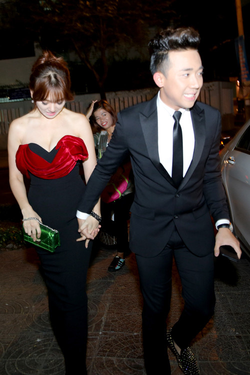Cả hai cùng đến chương trình trong một chiếc xe sang. Khi vừa bước xuống xe, trước "rừng" máy ảnh, Trấn Thành nắm chặt tay bạn gái. Thời gian qua, đôi diễn viên gặp khánhiều áp lực khi công khai chuyện tình cảm.