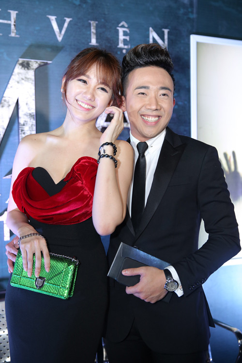 Trấn Thành tay trong tay với Hari Won đến dự buổi ra mắt phim "Bệnh viện ma" do cả hai thủ vai chính.