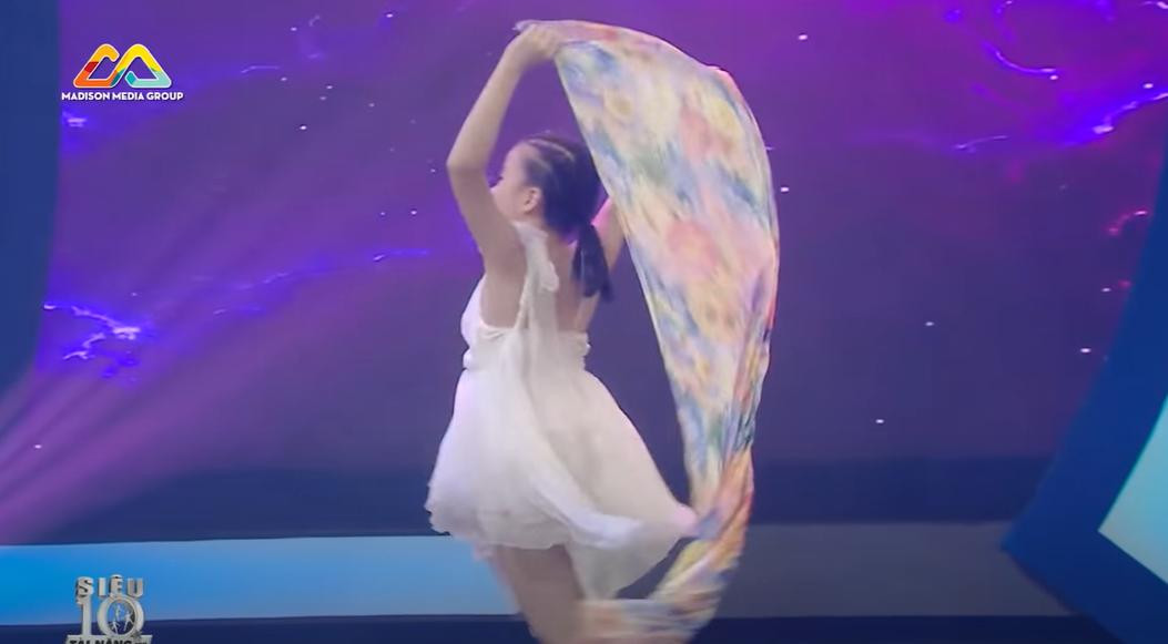 Tiết mục ghi điểm với nhiều màn đu dây, nhảy múa phức tạp kèm theo khả năng diễn xuất cơ mặt. Cô bé còn tiếp tục trình diễn hoạt cảnh với đạo cụ trên nền ca khúc Sao cha không khiến nguời xem xúc động.