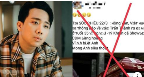 Tối ngày 23/3, một tài khoản có tên M.C. đã đăng vào fanpage Người Cà Mau với nội dung: "Tin sốc chiều 22/3: Hồng Vân, Việt Hương xót xa thông báo về việc Trấn Thành ra đi mãi mãi ở tuổi 35 vì COVID-19 khiến cả showbiz và cộng đồng mạng bàng hoàng. Vĩnh biệt anh. Mong anh siêu thoát".