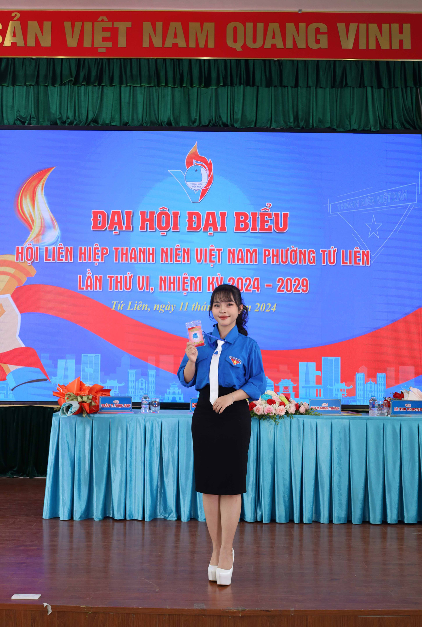 | Ngọc Anh trình bày tham luận tại phiên trọng thể Đại hội Đại biểu Hội LHTN Việt Nam thành phố Hà Nội lần thứ VIII, nhiệm kỳ 2024-2029. |