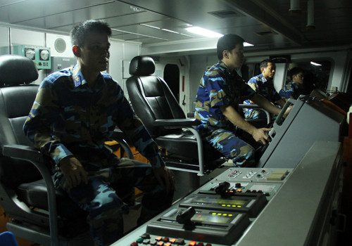 Mắt không rời khỏi màn hình radar, đại úy Phạm Đức Dương (41 tuổi, quê Hải Phòng) nói, tàu Trung Quốc lúc nào cũng dày đặc. Nhiệm vụ của anh là quan sát hướng đi, tốc độ cũng như đưa ra nhận định thời điểm tàu Trung Quốc tiến sát mạn tàu ta để báo cho người trực chỉ huy. Những ca trực đêm, anh cùng nhân viên hàng hải Nguyễn Văn Thành kết hợp la bàn với radar để xác định hướng đi, quyết giữ vị trí trực diện 981.