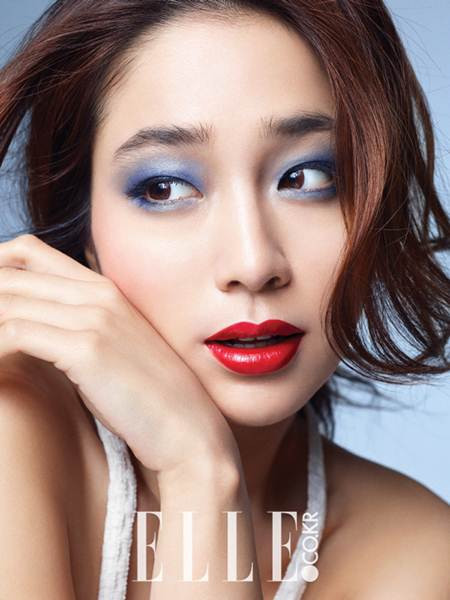 Trên tạp chí Elle số tháng 7, Lee Min Jung trông thật cá tính và trẻ trung, tươi mới với cách trang điểm nhấn mạnh vào màu mắt. Thực hiện cho những phong cách này là chuyên gia trang điểm Kay Montano – người từng “biến hóa cọ” trên gương mặt của những ngôi sao Hollywood như Keira Knightley và Nicole Kidman.