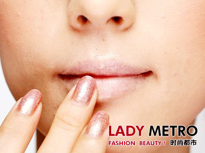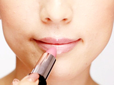 Dùng tay nhẹ nhàng bôi lớp son môi màu san hô phủ lên lớp kem dưỡng che khuyết điểm