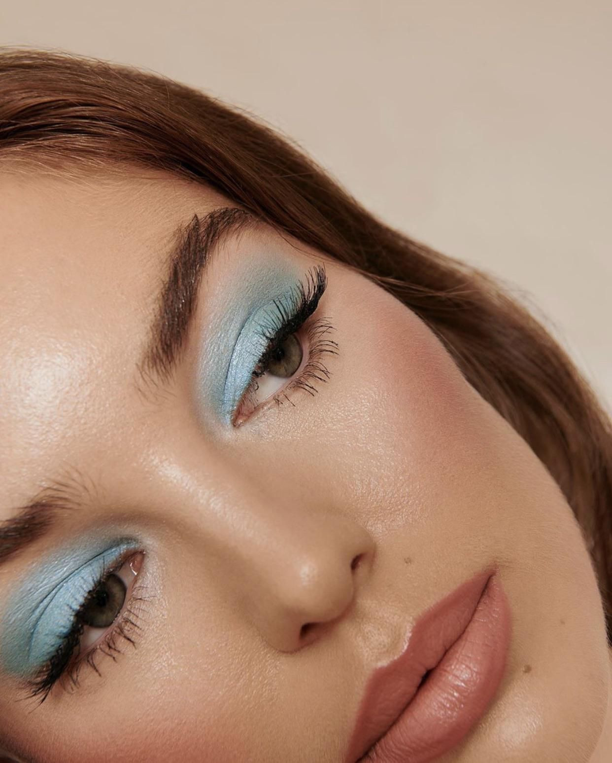 Nên chọn các loại phấn có độ bám màu lâu, không lem, dễ tán vì màu xanh cần được tính toán chính xác vùng trang điểm, tránh khiến đôi mắt trông lem nhem. Và cũng cần thêm một hiệu ứng bắt sáng tinh tế từ màu trắng hoặc bạc.