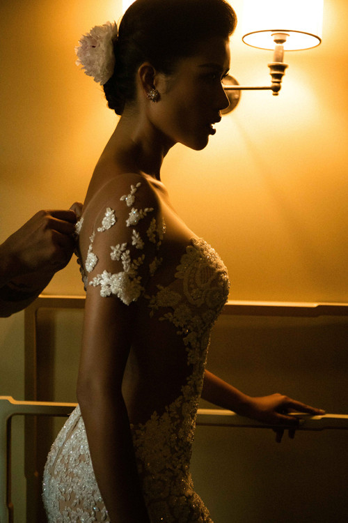 Cô dâu chuẩn bị sửa soạn vẻ ngoài trước giờ tổ chức tiệc.