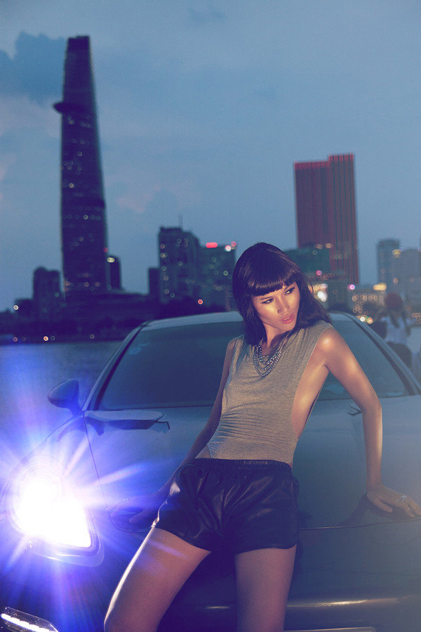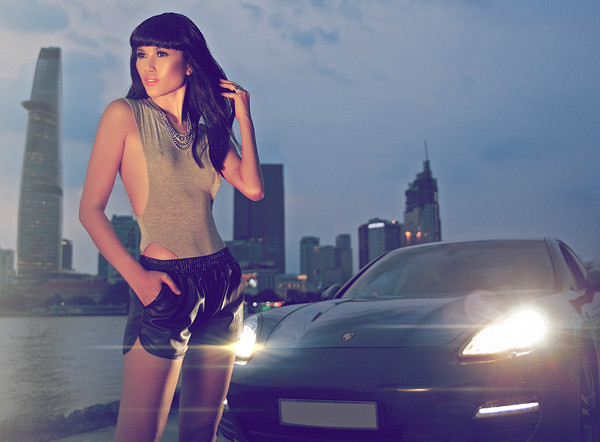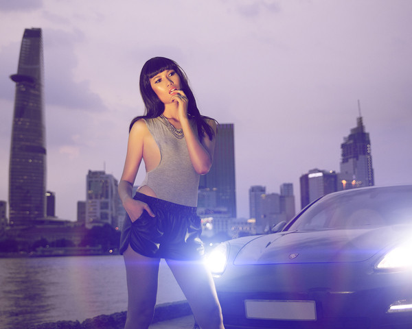 TPO - Nữ người mẫu diện trang phục năng động, táo bạo 'thả rông' vòng một gợi cảm và khoe đôi chân thon dài với quần short để tạo dáng bên cạnh chiếc siêu xe ấn tượng trong bộ ảnh mới.