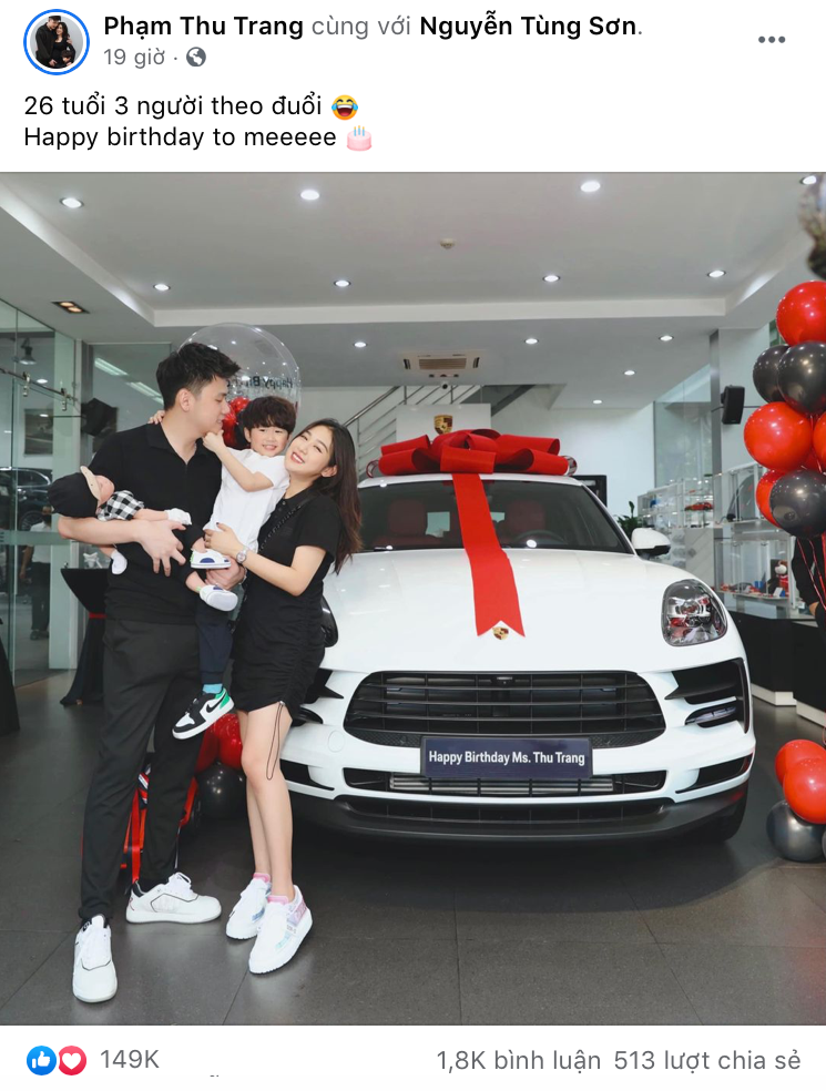 Trước đó, vào cuối năm 2019, cặp đôi từng gây sốt cộng đồng mạng khi tậu một chiếc siêu xe trị giá hơn 5 tỷ đồng nhân dịp kỷ niệm 9 năm yêu nhau.