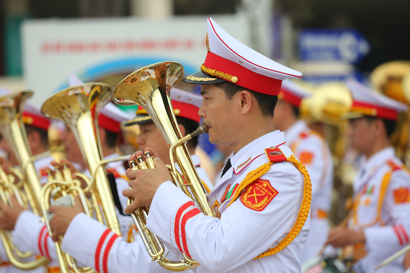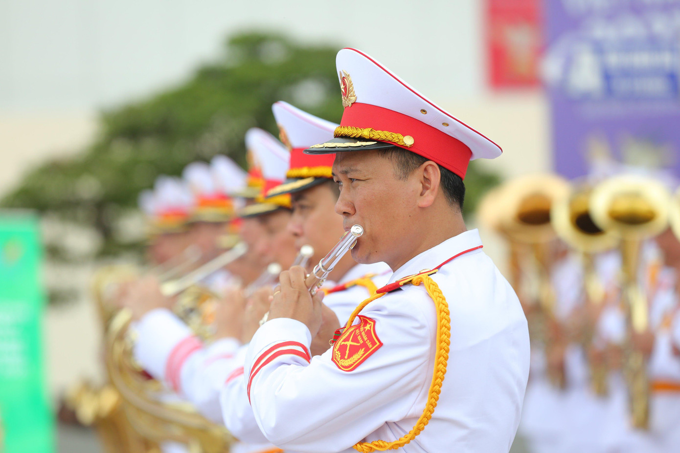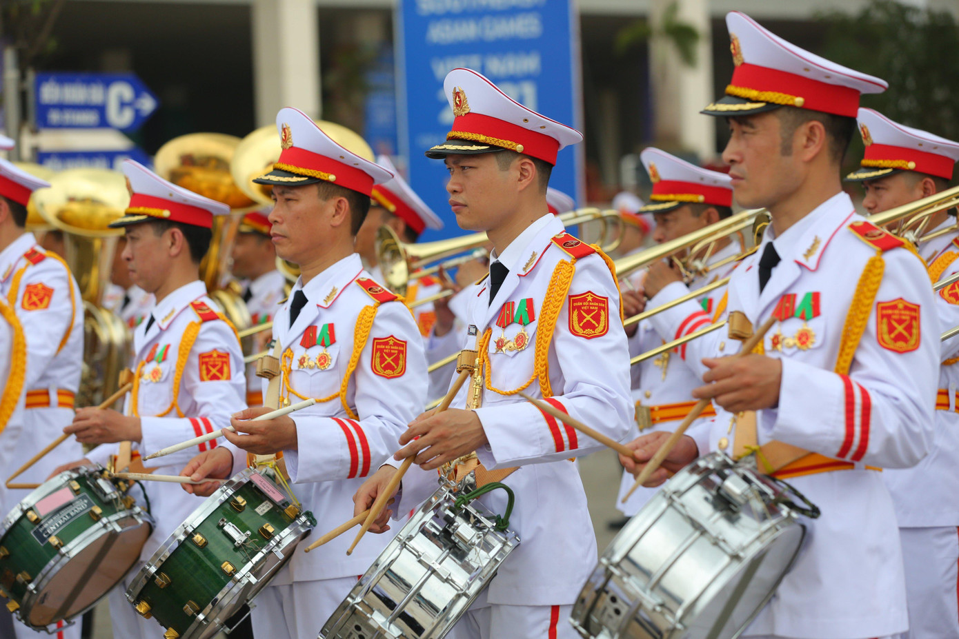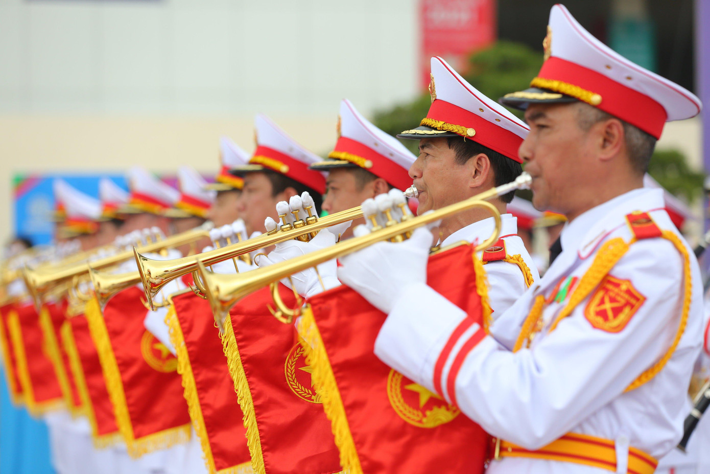 | Đại diện Đoàn nghi lễ Quân đội đã chia sẻ, công tác tập luyện, chuẩn bị đối với buổi lễ được diễn ra nhiều ngày qua và hiện tại các cán bộ chiến sĩ của đoàn trong đội nghi lễ đã tập thành thục quốc thiều 11 quốc gia cũng như tập luyện chính xác các động tác về nghi lễ khi thượng cờ. |