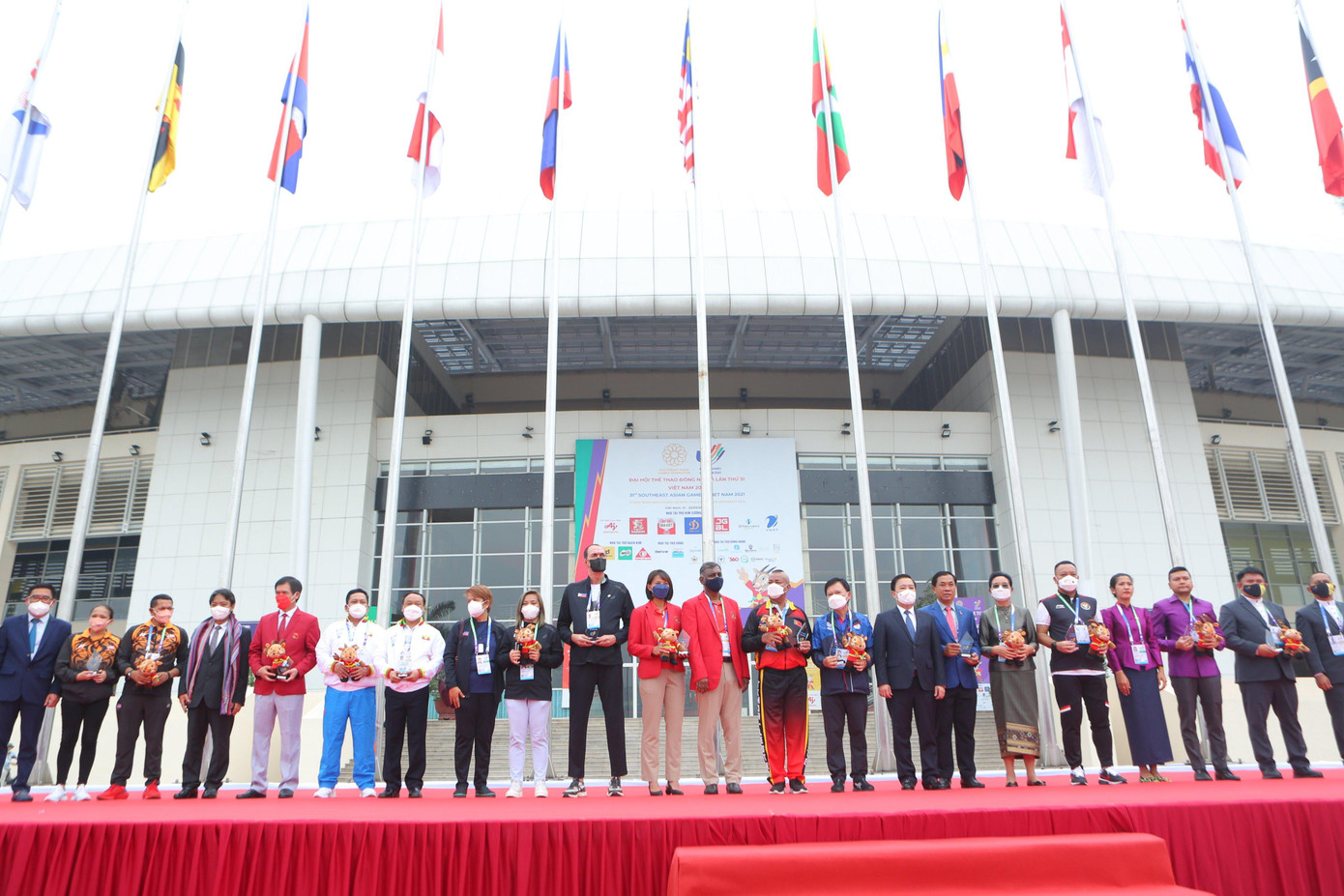 | 11 quốc gia tham dự đại hội thể thao Đông Nam Á đã tham dự Lễ thượng cờ SEA Games 31. |