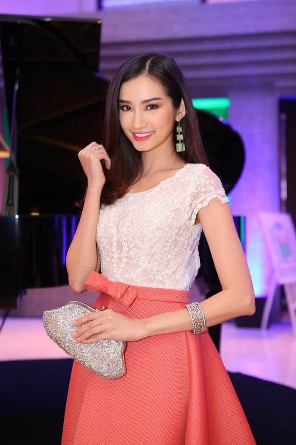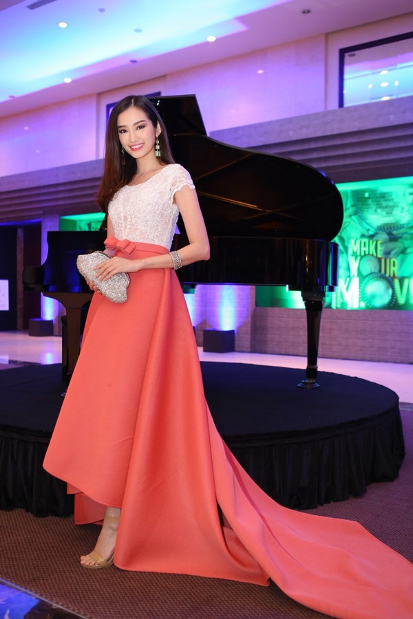 Quán quân Vietnam's Next Top Model 2013 Mâu Thanh Thủy diện váy cầu kỳ khoe lưng trần nuột nà.