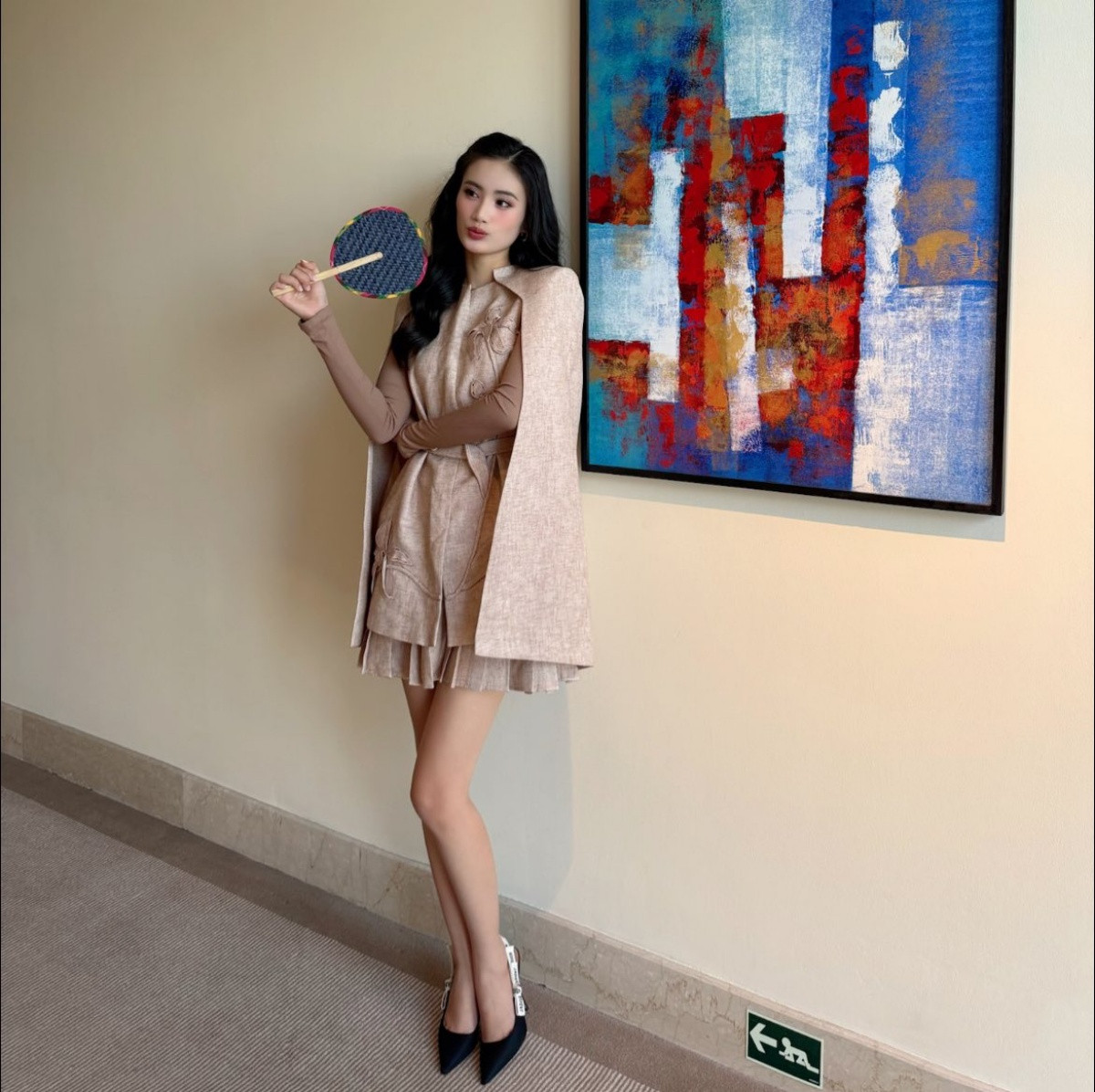 Ngày thứ hai tại Miss World 2025, Hoa hậu Ý Nhi chọn trang phục hiện đại, trẻ trung và không kém phần cá tính. Thiết kế bao gồm ba lớp trang phục đồng bộ với tông màu beige thời thượng. Nàng hậu cho biết cô đã thức dậy từ 5h sáng để chuẩn bị với mong muốn bản thân xuất hiện một cách chỉn chu nhất.