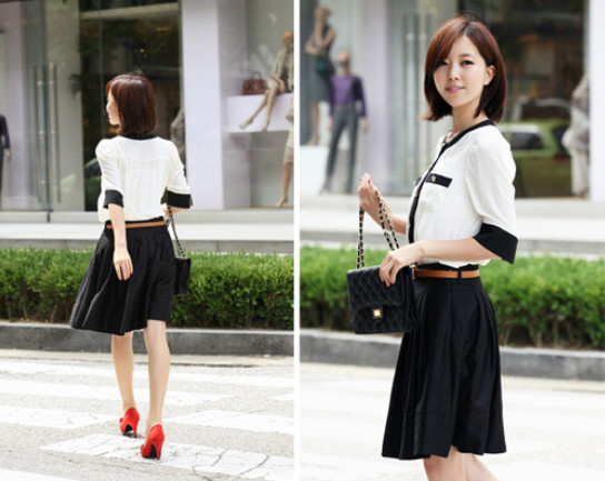 Ngoài ra, bạn nên chú ý chân váy xòe rất thích hợp cho bạn gái có vòng một lép.