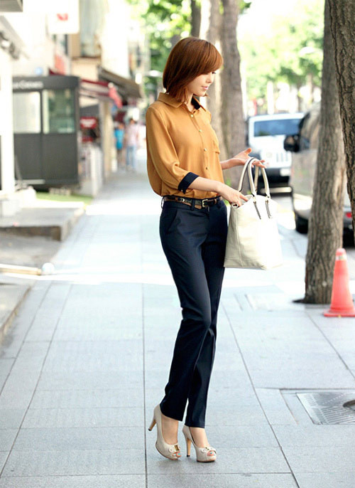 Bạn gái có đôi chân vòng kiềng thì nên mặc quần dáng suông để che điểm yếu, không nên mặc quần bó sát ống côn mà dễ làm người khác chú ý đến điểm xấu của mình.