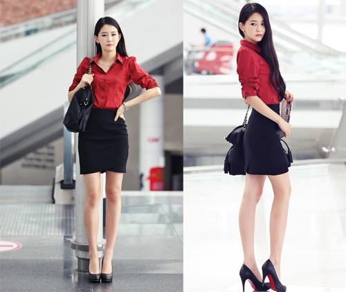 Những bạn gái mang vóc dáng thanh mảnh hoặc dáng đồng hồ cát nên mặc chân váy bút chì phối cùng áo sơ mi dịu dàng.