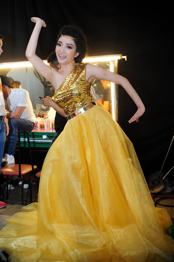 Cựu thần tượng âm nhạc Việt Nam Phương Vy cũng trang điểm rất cầu kỳ để hóa thân thành cô gái Ấn Độ cho màn biểu diễn ca khúc 'Như sương mai'.