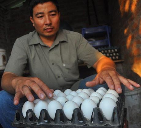 Anh Lập kiểm tra trứng trước khi đưa vào lò ấp.