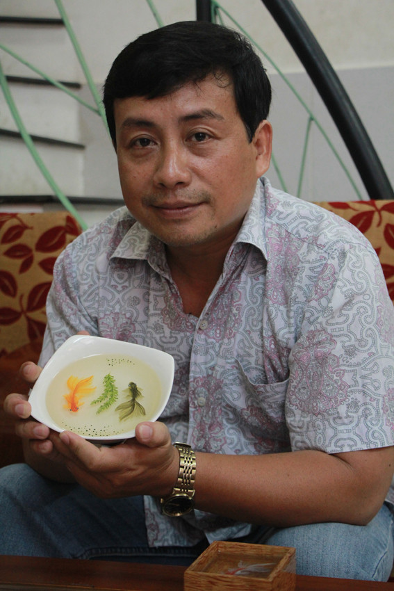 Thông thường người họa sĩ bỏ ra 2-3 ngày để hoàn thành một bức vẽ cá 3D có 5-7 tầng lớp (layer) với dăm bảy chú cá. Các lớp cá sặc sỡ lần lượt nổi khối trong làn nước bằng chất liệu keo, thấp thoáng hình bóng của những vật thủy sinh.