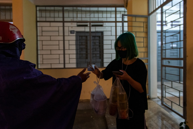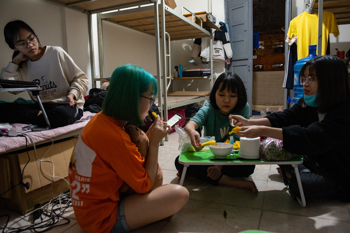 Để hạn chế tối đa việc ra ngoài, Thảo và các bạn cùng phòng thường úp mì tôm cho xong bữa hoặc gọi đồ ăn ship đến tận cửa ký túc.